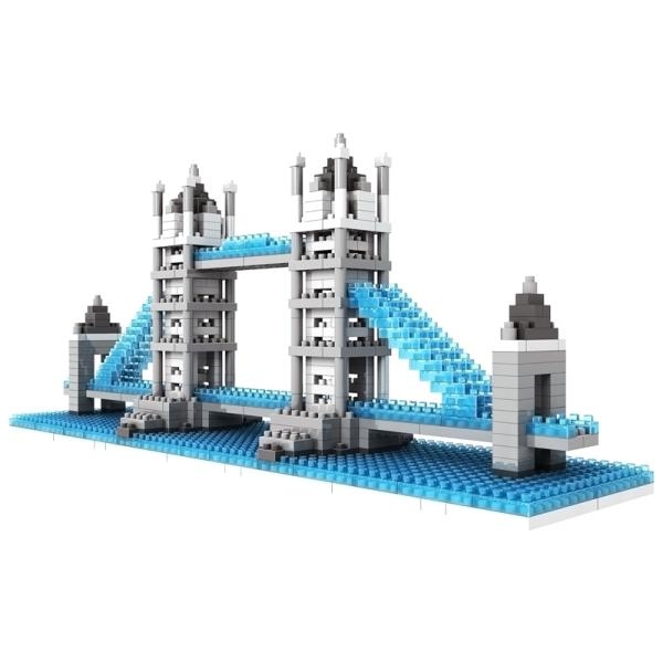 Odata construita, jucaria Tower Bridge are in componenta 2 turnuri legate la nivelul inferior de o pasarela si una la nivel superior, plus alte 2 pasarele laterale ce unesc podul cu "uscatul". Baza este fixata pe un suport de culoare albastra ce imita trecerea raului Tamisa.